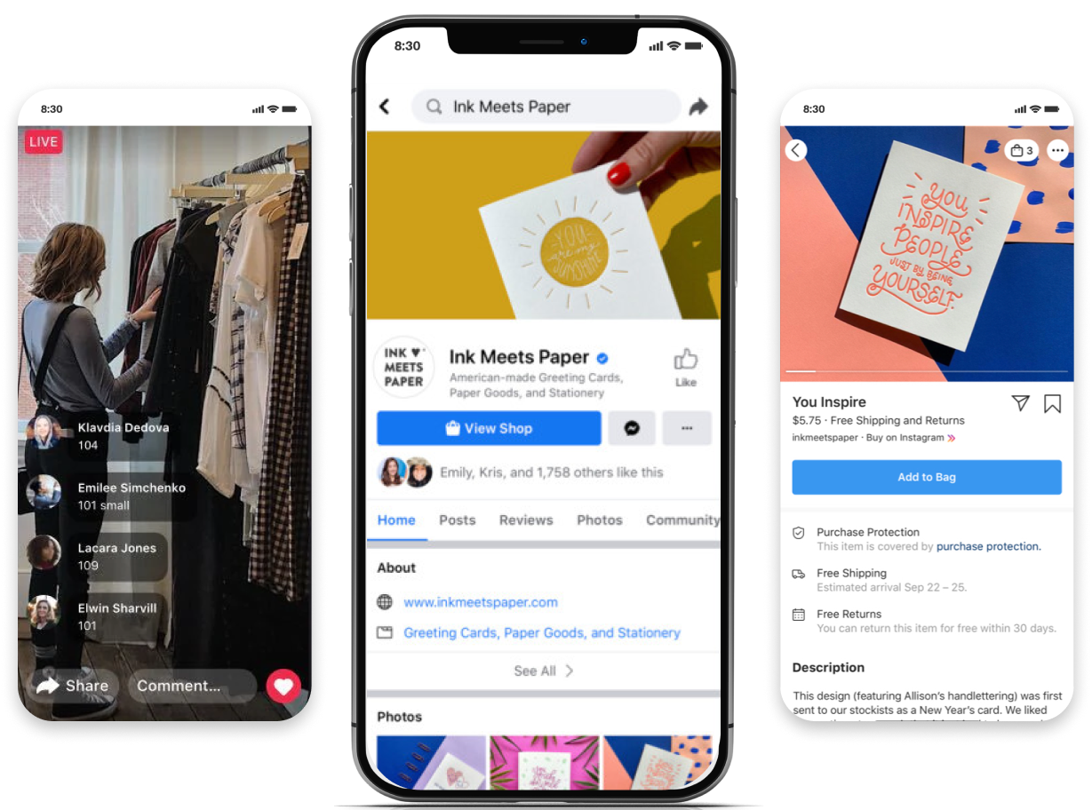只需连接Facebook一个销售平台即可通过Facebook里的功能如专页、商店和直播接触潜在的新客户,增加流量并快速提高品牌的知名度。